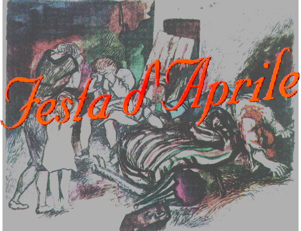 In queste settimane, miei cari tedeschi, maturano le nespole persino sui peschi! L'amato duce a file ci davano per morti ma noi partigiani siam sempre risorti! Forza che è giunta l'ora, infuria la battaglia per conquistare la pace per liberar l'Italia. Scendiamo giù dai monti a colpi di fucile Evviva i partigiani, è festa d'Aprile! |