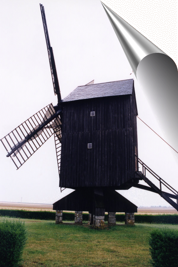 Disseminati nella campagna si trovano esemplari di 'moulin- pivot', cioč mulini su perno, come questo fotografato sulla strada per Talcy, (sfogliate anche le pagine successive e vedrete lo stesso mulino da altre angolature) realizzati in legno, che presentano un corpo tozzo,un tetto a punta, una grande ruota con quattro pale sul fronte rivolto al vento e una lunga pertica, detta 'queue du moulin', cioč 'coda del mulino', che ne consente la manovra da terra, incastrata tra il corpo massiccio ed il tetto. Con la forza motrice di questi mulini, nel passato, si macinava il grano o si azionavano piccoli telai; in tempo di guerra, potevano essere utilizzati come postazione privilegiata per avvistare il nemico o per indicarne, con un accorto posizionamento delle pale, gli spostamenti. |