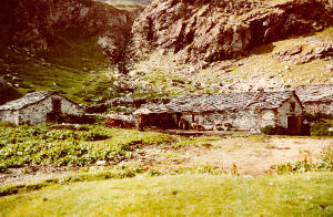 Dall'alto si vede, 500 metri di dislivello più sotto, l'Alpe Crosenna (mt.1654), che si trova su un verde ripiano, raggiungibile con un sentiero tortuoso e ripido , oltre il Rio Bucìe.