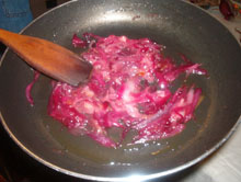 Quando saranno diventate trasparenti, unire l'aceto di vino rosso, farlo evaporare e poi unire lo zucchero.