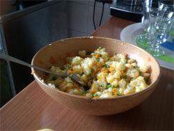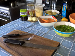 Per la decorazione si puņ utilizzare altra verdura: fagiolini verdi bolliti, peperoni crudi o arrostiti in forno, pomodorini, prezzemolo, asparagi bolliti...