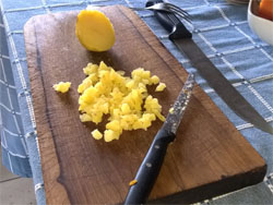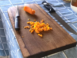 Quando sono fredde, tagliare a dadini le carote e le patate