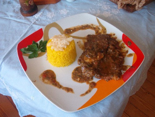 Affiancare ad ogni torretta un ossobuco ricoperto di gremolada e guarnire con foglioline di prezzemolo o di sedano o di finocchietto e … Buon appetito!