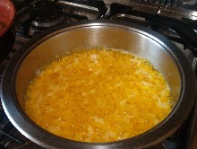Mettere in un tegame del burro (circa gr. 50) e un po' d'olio e aggiungere una cipolla finemente tritata e fare soffriggere dolcemente