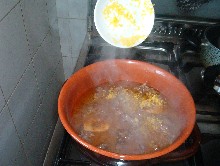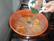 Pochi minuti prima della fine cottura bisogna aggiungere la gremolada, cioè un trito di scorza di limone, acciughe, aglio, prezzemolo.