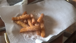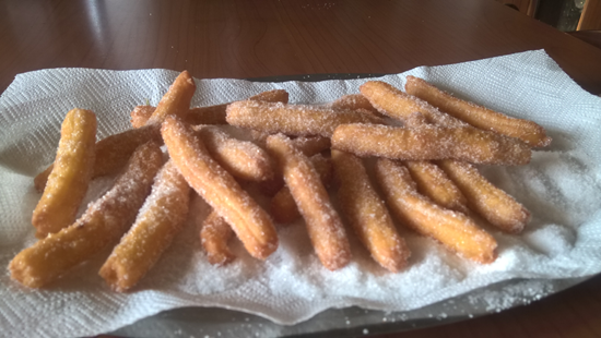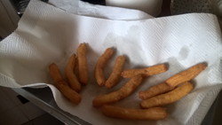 Friggere fino a doratura e mettere i churros su carta da cucina per fare perdere l'olio di cottura