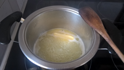 Mettere in un pentolino dal fondo spesso l'acqua, lo zucchero e il sale