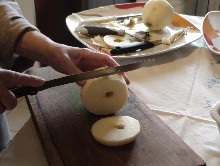 Sbucciare le mele, togliere il torsolo, tagliarle a fette spesse 1 centimetro