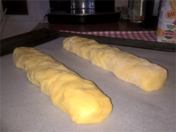 Incorporare le mandorle e formare 2 filoncini (30 cm x 4)