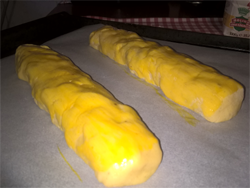 Porli su carta da forno, pennellarli con il tuorlo d'uovo e infornarli a 190° per 20 minuti