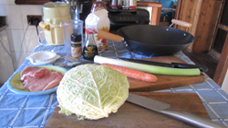 Mettere in una ciotola la carne di maiale macinata, le verdure triturate, lo zenzero e la salsa di soia