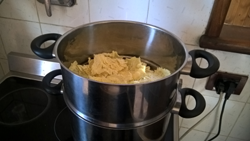 Mettere sul fondo della vaporiera o nel cestello di bambù delle foglie di verza e adagiarvi sopra i wonton