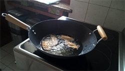Quando l'olio è caldo immergere, pochi per volta, i wonton e farli dorare