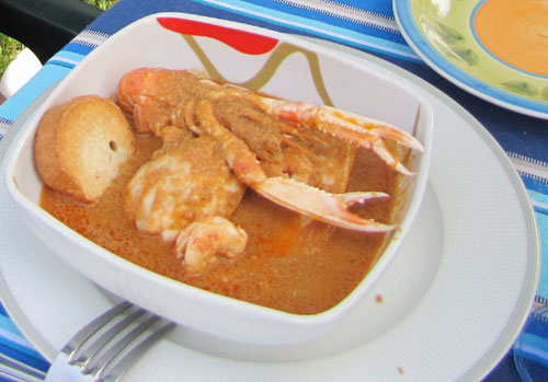 Accompagnamento: crostini ricavati da una o due baguette, dorati nel forno ed agliati e salsa rouille e salsa aioli