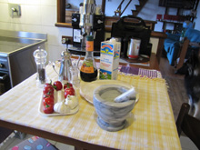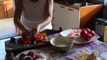 Salsa rouille: pestare assieme nel mortaio il pane, l'aglio e i peperoncini, aggiungere l'olio e mescolare fino ad avere un composto omogeneo e diluire con brodo di pesce.