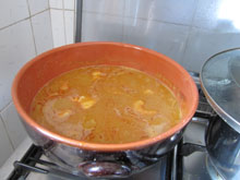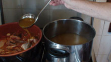 Unire del brodo di pesce - preparato con 1 o 2 litri di acqua, le teste dei pesci, una gallinella, sedano e cipolla - nel quale si è disciolto lo zafferano e fare bollire per 1 ora a fuoco moderato