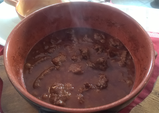 A fine cottura il gulash dovrà risultare tenero e non brodoso.