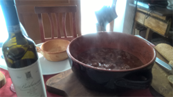 Coprire e bagnare con brodo (un mestolo alla volta) e cuocere per circa 2 ore