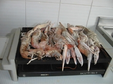 Nel frattempo, abbrustolite gli scamponi o i gamberoni