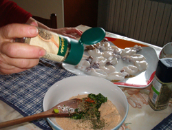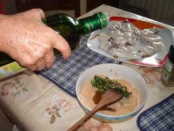 Unire un cucchiaio di parmigiano, un cucchiaio di pane grattugiato e un cucchiaio di olio extravergine di oliva.