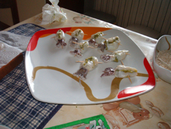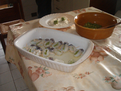 Asciugare le sacche delle seppioline e riempirle con il composto (non completamente per evitare che scoppino in cottura).