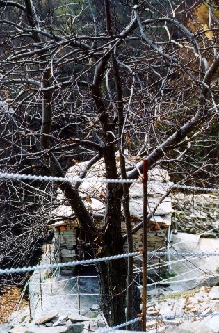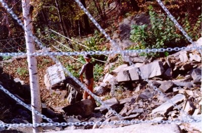 Le pareti scoscese vicine alla baracca sono la 'palestra di roccia' per i nostri cavatori ed il terreno circostante è il laboratorio per la lavorazione della pietra. |