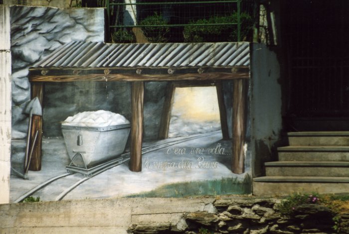 Carrelli colmi di talco, rotaie, attrezzi per scavo...