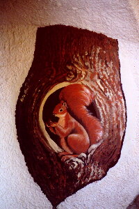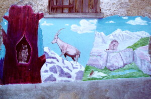 In un incavo di uno dei suoi tronchi, un fulvo scoiattolo č impegnato a sgranocchiare noci; un gufo saggio ed impettito osserva impassibile e disincantato il mondo che gli scorre davanti; uno stambecco,ardito e battagliero, si arrampica sicuro sui monti coperti di neve; una marmotta, miope e tenera, fa la toilette su un masso al sole…