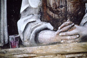 La giovane donna, con la sua immacolata e vezzosa cuffia e gli zoccoli di legno, non vi dirà nulla: sa che la tentazione è forte, come l'illusione… Dalla finestra di fronte, un vecchio