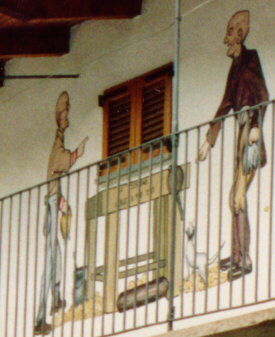 Inizia, per colpa di quello strano pezzo di legno, una furiosa litigata tra mastr'Antonio e compar Geppetto a base di insulti, di graffi, di morsi..., perchè la vocina impertinente li aizza l'uno contro l'altro.Alla fine i due contendenti si ritrovano in mano i rispettivi parrucchini giallo e grigio e... A battaglia finita, mastr'Antonio si trovò due graffi di più sul naso, e quell'altro due bottoni di meno al giubbetto. Pareggiati in questo modo i loro conti, si strinsero la mano e giurarono di rimanere buoni amici per tutta la vita. Intanto Geppetto prese con sè il suo bravo pezzo di legno, e ringraziato mastr'Antonio, se ne tornò zoppicando a casa. |