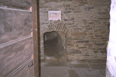 C’è un portico ombroso di vecchie travi in legno poggianti su pilastri quadrangolari in pietra ed una solida porta di legno, attraverso la quale ci si immette in un ambiente fiocamente illuminato e ricco di fascino, nel quale si trova il famoso cunicolo-rifugio, utile in caso di pericolo per attacchi nemici, sul cui architrave è inciso il motto “W.G.G. 1660” che vuol dire “Viva Giosuè Gianavello 1660”.