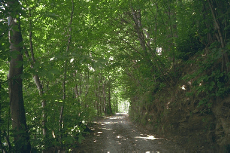 E’ un percorso agevole che si snoda tra castagni, tigli ed acacie e consente di scorgere tracce del lavoro umano (resti di muri a secco e terrazzamenti), oppure, raggiunto un piccolo stagno, di seguire le tappe del ciclo riproduttivo degli anfibi, o ancora, inoltrandosi lungo la strada sterrata di collegamento tra Fonte Blancio ed il Colletto, di raggiungere Il Bacomela e