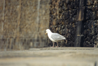 Un solitario gabbiano reale 'passeggia' lungo i bastioni,