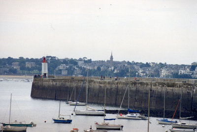 faro all'estremitą della baia e vista sulla cittą