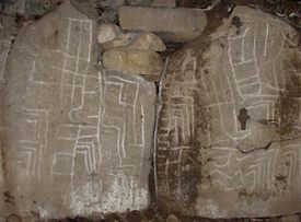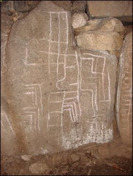 ![]() Sui pilastri interni ci sono molte incisioni... ![]() si riconoscono archi, asce...