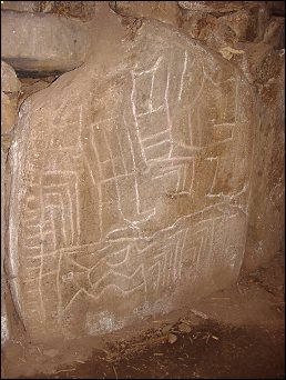 ![]() scudi, quadrati... ![]() L'interesse di queste incisioni è dovuto al fatto che esprimono uno stile diverso da quello degli altri dolmen bretoni |