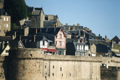 Oggi, lungo il tragitto sorgono negozi moderni ai piano terra di edifici del XV e XVI secolo, alcuni dei quali con facciate a graticci colorati. Un tempo, i negozi erano di venditori di insegne con la riproduzione di San Michele e di ampolle per raccogliere, come souvenir, la sabbia ai piedi del monte sacro |
