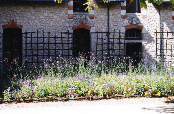 Le eleganti scuderie sono ingentilite da aiuole dalle molteplici nuances di viola