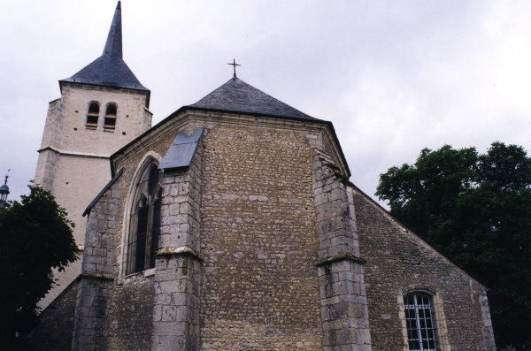 L'abside a tre falde dell'Eglise Saint Martin, lo svettante campanile e le finestre ogivali